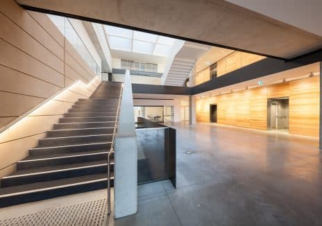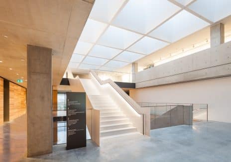 The six-storey, 7,700sqm museum boasts eight separate galleries, interactive learning spaces, a cafe, a gift shop and a secure basement storage facility. A key feature is the striking concrete box structure which cantilevers 14m to the south, overlooking the city skyline.