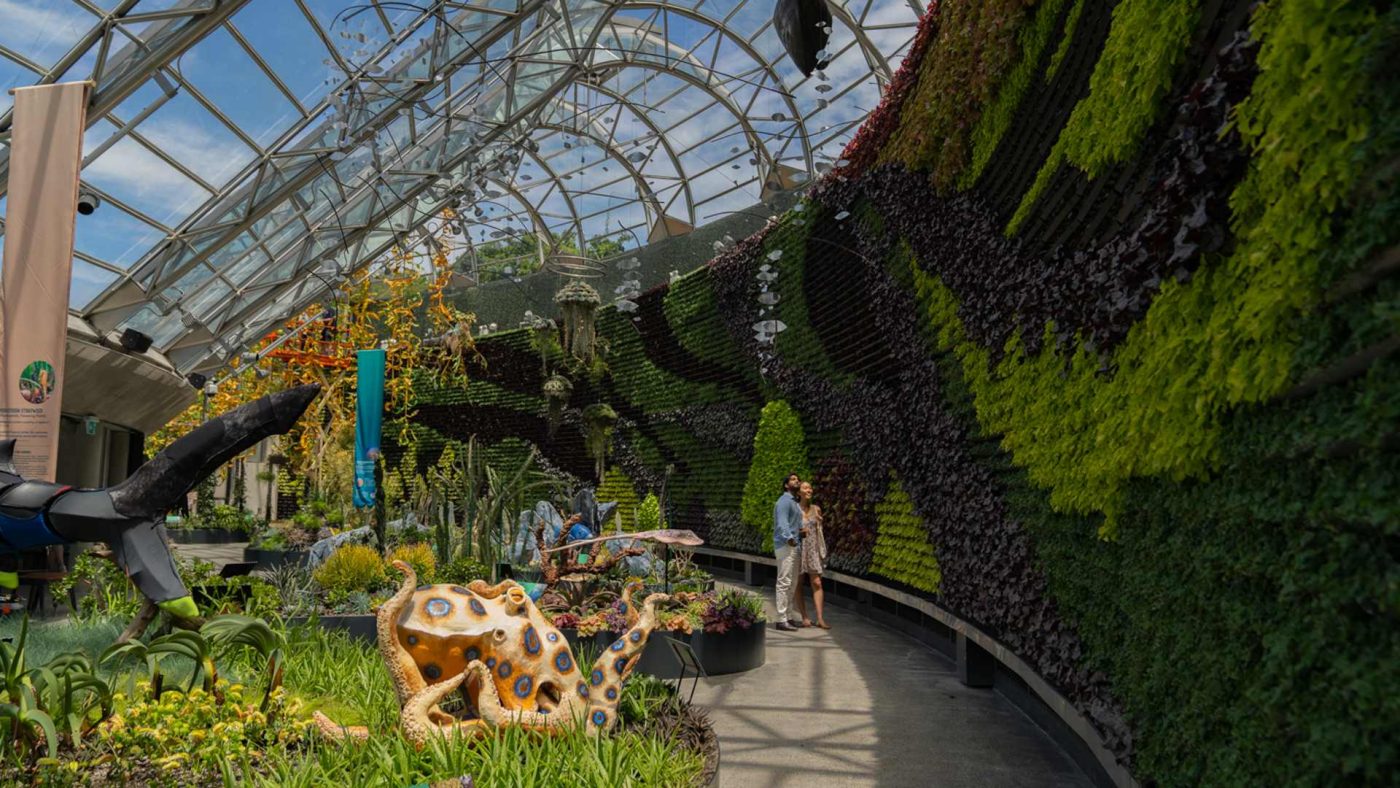The Calyx at the Royal Botanic Garden Sydney, is a world-class horticultural display and event venue that represents a striking fusion of architecture, botany, and public space. Opened in June 2016, The Calyx occupies an area of approximately 1,500 square metres and is a landmark feature within the iconic Royal Botanic Garden. Notably, it houses the largest vertical floral display in the Southern Hemisphere, setting it apart from other garden-based structures globally.